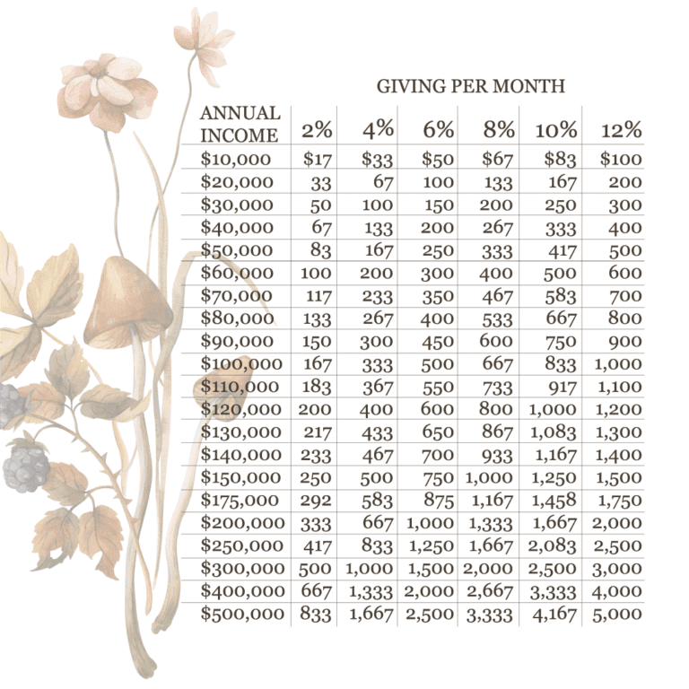 Determine your current giving as a percentage of your income using the Steps to Giving chart.